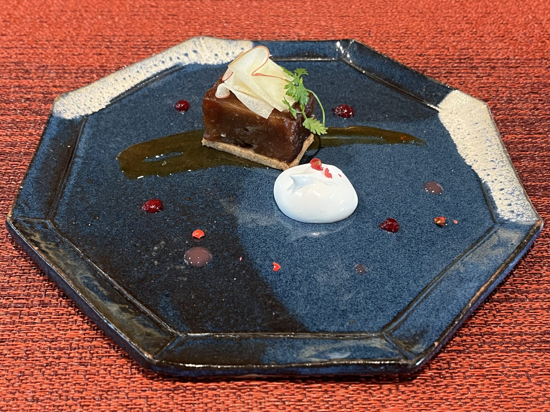 素材のもつ香りと質感をそのまま感じていただけるよう、火入れを主役に据えています。冬の根菜を添え、ソースは控えめに。